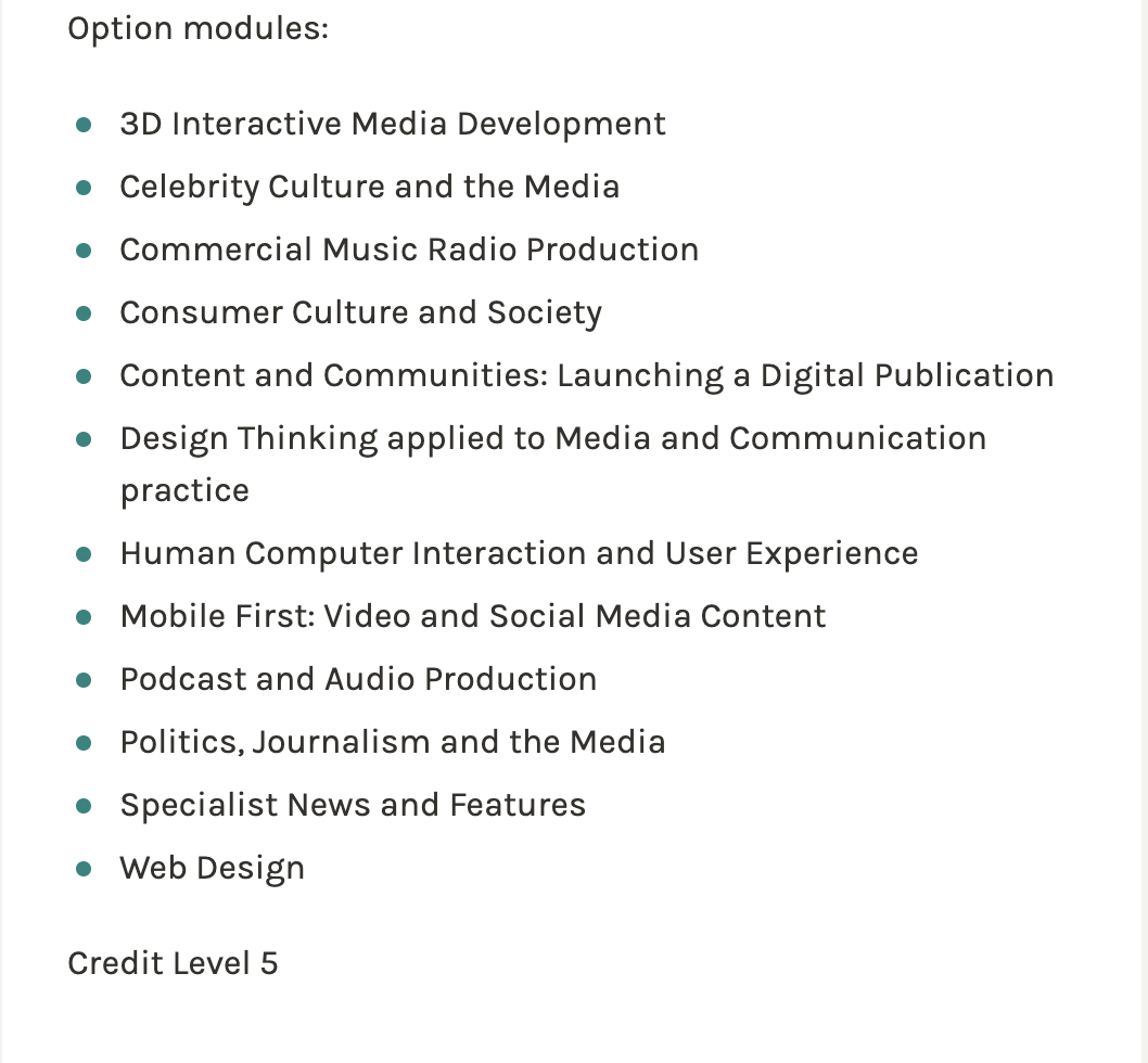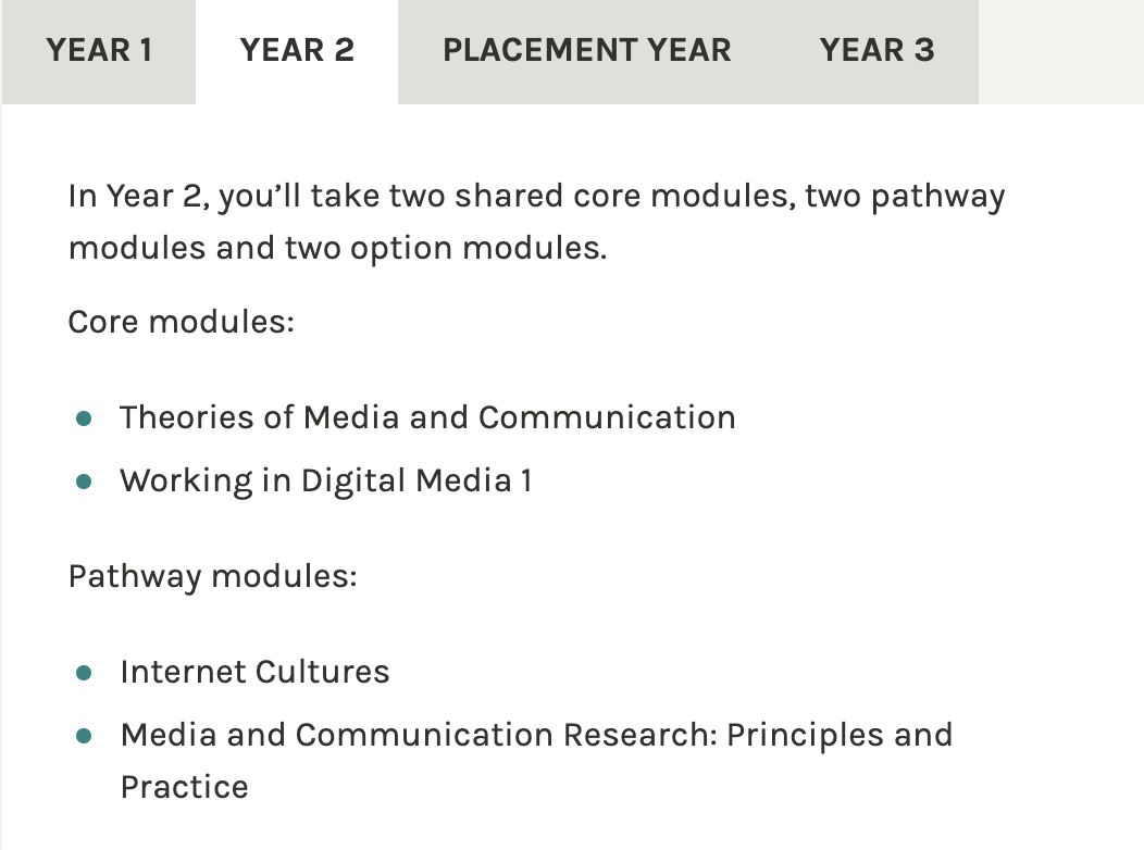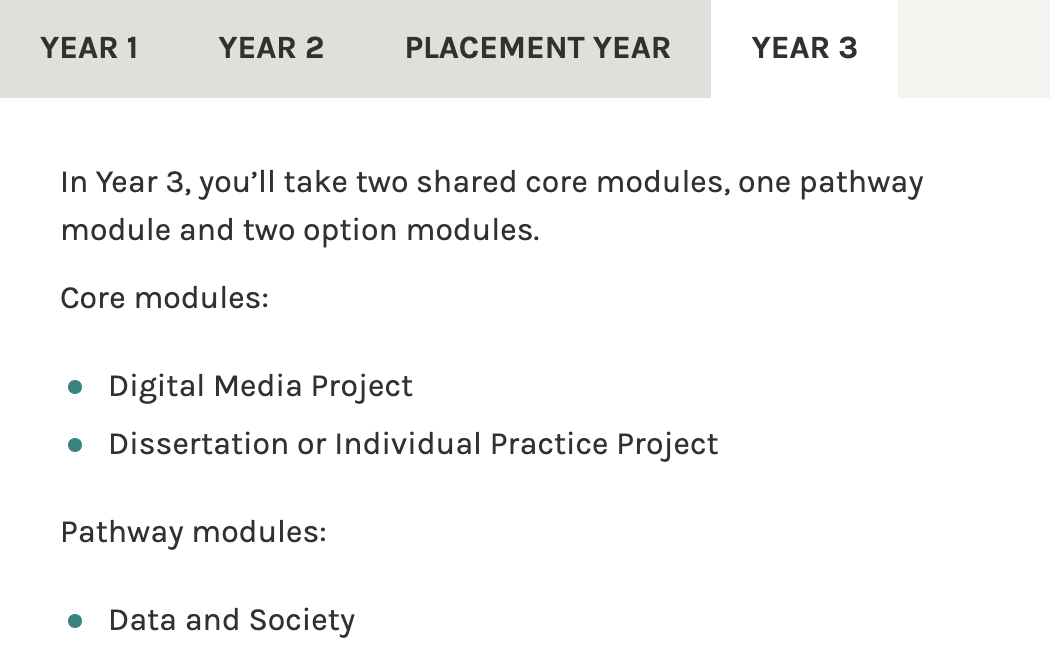 数字媒体是一个理论实践结合的专业,我留意到现在专业名称细分为了四个方向,能更直观反映每个 pathway 的侧重点(传播/新闻学/制作/公关广告)。
