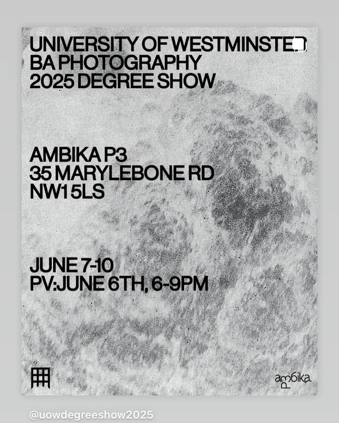 6月6日至10日,摄影(Photography BA Honours)专业的毕业展正在进行中。展览横跨肖像、静物、纪实和时尚摄影等多个流派,展示了学生在创意与实验领域的广泛探索,包括精美的手工摄影书和结合AI与蓝晒工艺(cyanotypes)的装置艺术。作品探讨了当今社会中一些最紧迫的问题,如技术与社会快速变化的影响、“人类世”议题以及身份流动性的探索,展现了摄影的力量——质疑、揭示与连接。