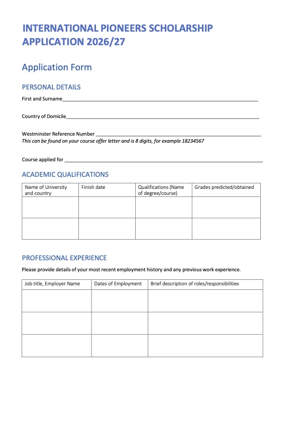 威敏国际学生先锋奖学金申请表