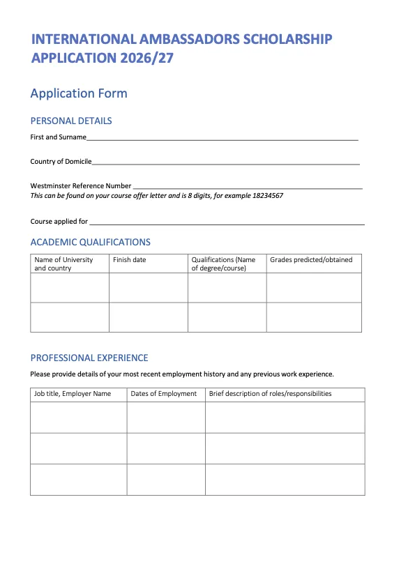 威敏国际学生大使奖学金申请表