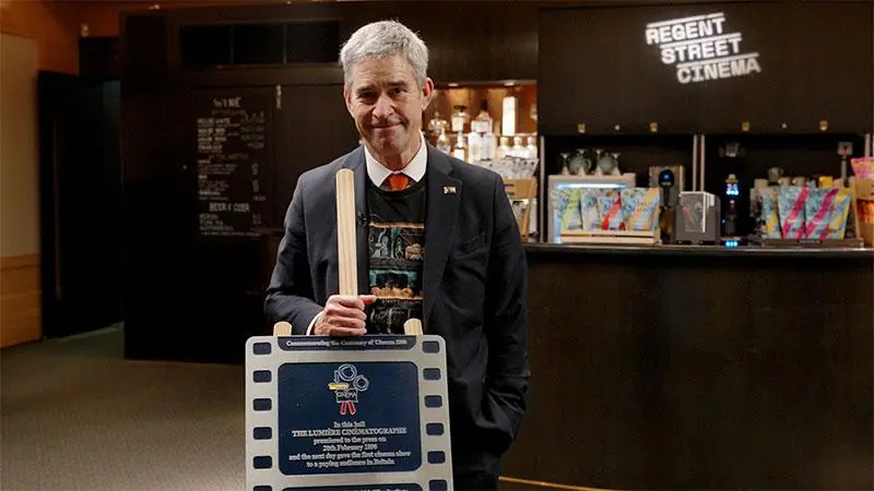 1896年2月,卢米埃尔兄弟的“电影放映机”在当时的皇家理工学院剧院(今威斯敏斯特大学摄政街电影院)第一次向付费观众放映了7分钟动态影像。这一刻,被公认为英国电影的诞生。英国电影协会为此特颁官方纪念匾,至今仍悬挂于此。