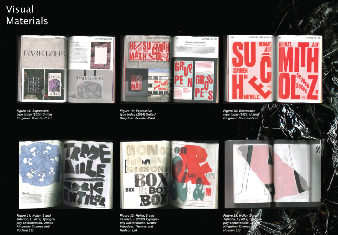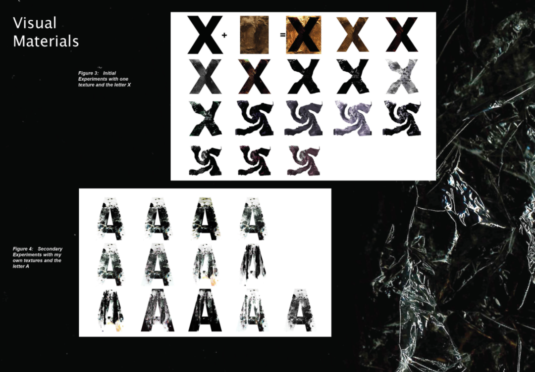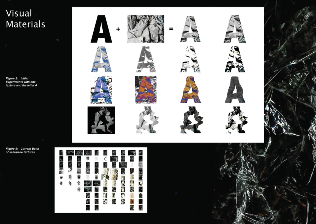 我精心制作了一个包含90种自制纹理的素材库,并深入研究了与现代字母具有形态相似性的古代字母系统。根据这一逻辑,越古老的字母应越早面临“死亡”。通过物理操作和多层次的叠加技术,我将这些纹理与选定的字母形态自然融合,呈现出一种仿佛生命消逝般的衰败之美。