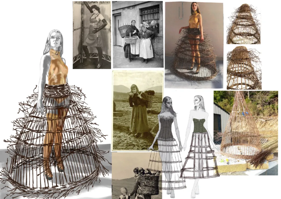 在设计中,我将这些大胆而前卫的元素与经典的爱尔兰传统材料相结合。采用了源自昔日农渔生活的开放式编织羊毛和天然柳条,同时引入光泽乳胶、皮革和 PVC 等现代恋物材料,以塑造鲜明的恋物风格。这一系列不仅是对于爱尔兰创意传统的重新演绎,更是对文化规范与情感表达的深刻探索。